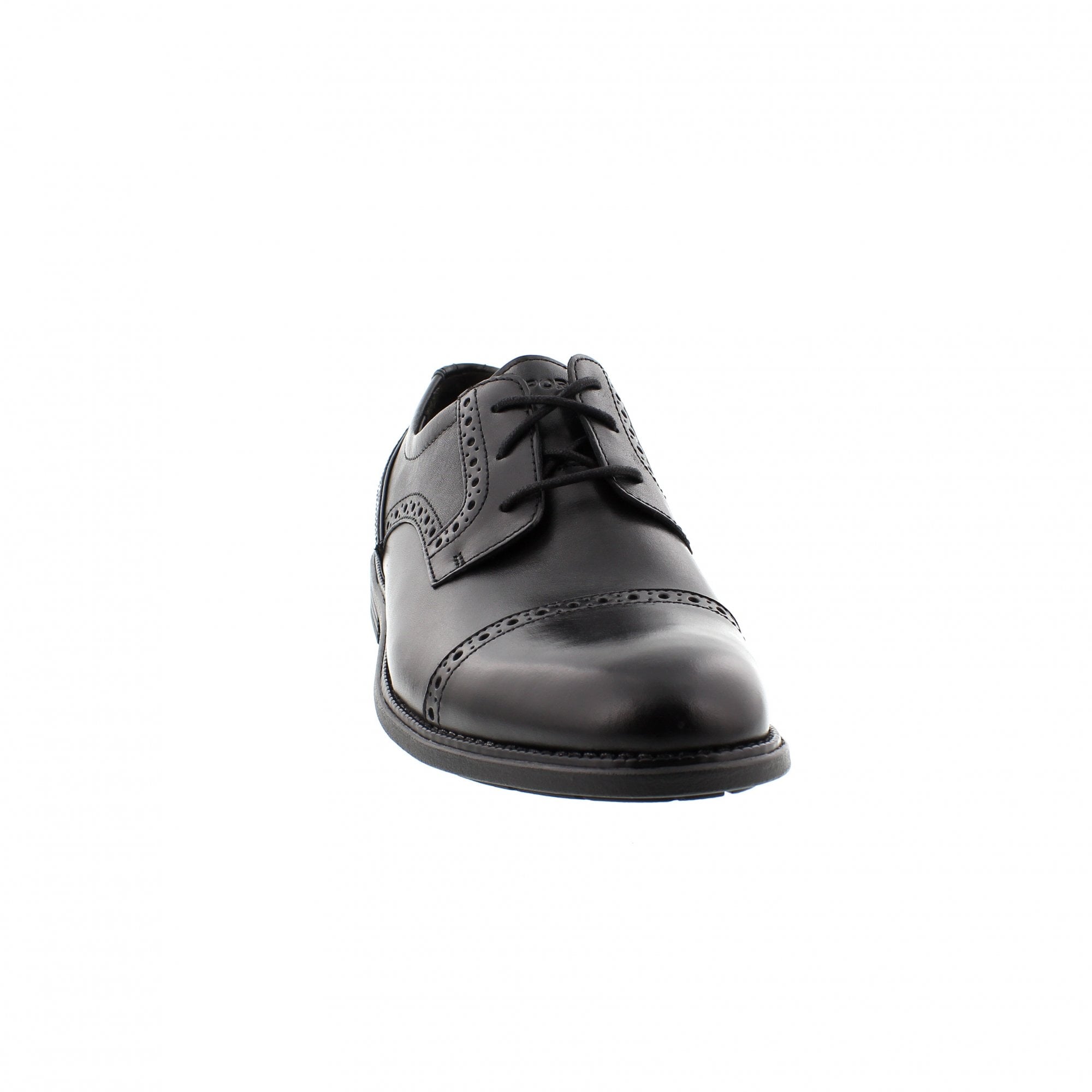 The Madson Cap Toe combines classic leather upper construction with modern brogue detailing around a cap toe. Perfect for business attire as it completely black exterior offers a smooth and refined finish to a suit/formalwear. Features like removable ‘trutech’ foam insoles with integrated moisture wicking technology, make this a superb option for the urban street stomper. Moisture absorbent linings improve the climate within the footwell, and the removable insole allows the wearer to change Rockport’s foam inlay for an orthotic. The sole is a shock absorbing, slip resistant trutech outsole. A fantastic option for the refined image conscious gentleman.
